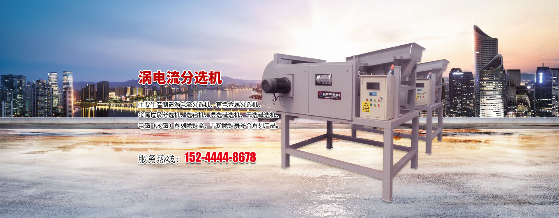 主要生產(chǎn)制造渦電流分選機(jī)、有色金屬分選機(jī)、金屬垃圾分選機(jī)、選鋁機(jī)、濕選磁選機(jī)、干選磁選機(jī)、電磁(永磁)系列除鐵器、干粉除鐵等多個(gè)系列產(chǎn)品。